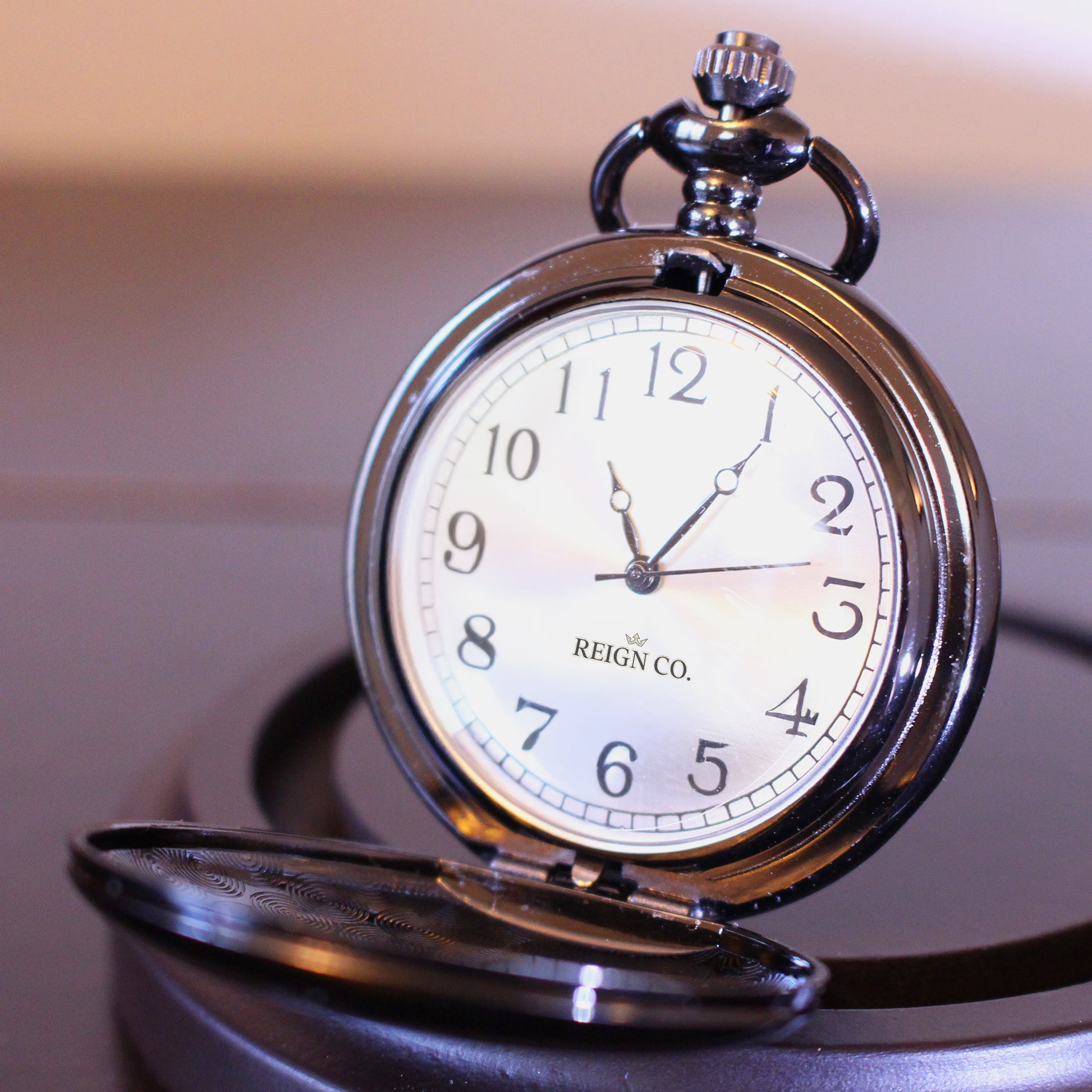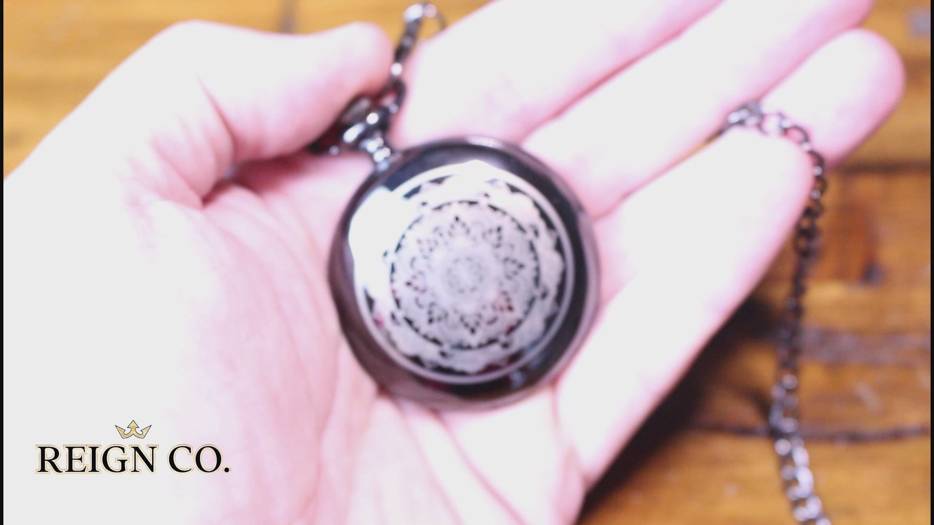 This pocket watch features a reliable quartz movement for accurate timekeeping. It operates with a replaceable battery, ensuring long-lasting convenience and easy maintenance.